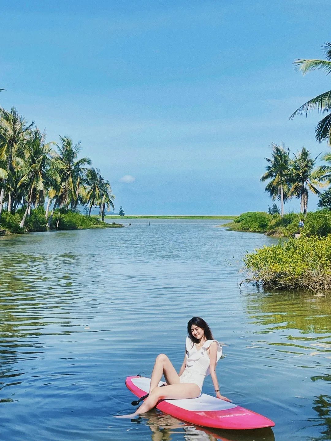 Route: Coconut forest → Take pictures and cross the river→ Swing on a swing → SUP boarding → Have a rest on an uninhabited white beach