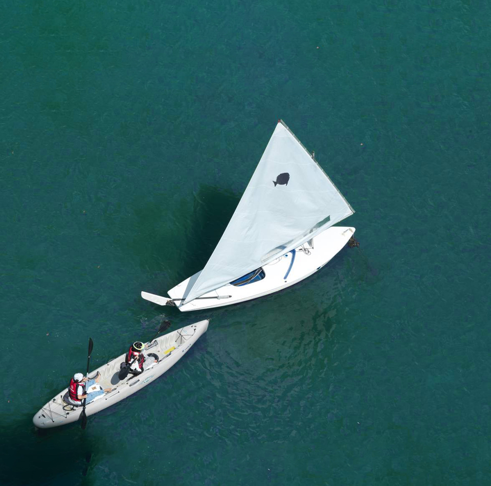 As the diving in the morning consumed a lot of energy, you need to rest and enjoy a perfect lunch. There are many restaurants to choose from in Houhai Village or Haitang Bay. After that you can take a nap in your comfortable room in the Houhai guest house. This is the lifestyle of the islanders, enjoy dynamic sports and then refill your energy while eating, drinking and sleeping. In Houhai, you can also learn how to control an unpowered sailboat. The hull provides buoyancy and uses the wind to move the boat forward. When the wind is not strong, you can control the direction. Relax on the boat and take pictures, or even anchor the boat, jump into the sea to swim and enjoy free diving when you feel like it. Unpowered sailboats can go to sea at multiple times a day. It is recommended to depart at sunset as it is much cool- er, and the soft light of the breathtaking sunset is suitable for taking photos.