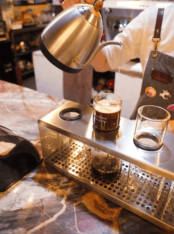 Оборудование фильтрующего типа для приготовления кофе «Hermes» и полная стена сертификатов говорят без слов о высоком профессионализме кофейни. Благодаря фильтрующему колпачку RS-16, разработанному изучающим кофе немецким учёным, кофе после грубой помолвки без использования фильтрующей бумаги напрямую высыпается в маленький-маленький колпачок стоимостью около 900 юаней и шутливо называемый барристой «местный Hermes». Во время использования фильтрующего колпачка RS-16 вы увидите совершенно отличающийся от обычного процесс фильтрации. Весь процесс приготовления кофе занимает примерно 4 – 6 минут.