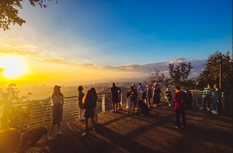 Когда дневной свет смягчается, Лухуэйтоу (Поворот Оленя) раскрывает свою нежную душу. Минуйте подъемы: проветриваемые электрокары умчат вас сквозь зелень к вершинам с видами. Займите скамью рядом с родителями, наблюдая, как расплавленное солнце погружается за горизонт — окрашивая умирающие небеса и моря в оттенки мандарина, розового золота и фиалки. Внизу городские огни вспыхивают, словно созвездия на земле, вальсируя с палитрой сумерек в городско-океанской симфонии. Эта безмолвная грандиозность успокаивает родителей, уставших от городского шума. Дикое очарование тоже присутствует: местные макаки часто прыгают по сумеречным деревьям у троп, посыпая закат игривым озорством (мягко напомните родителям любоваться издалека). Множество беседок и скамеек приглашают сделать паузу — слова не нужны — просто погрузиться в текучее полотно холмов, моря и городского сияния. Бесшовные удобства позволяют родителям полностью погрузиться в поэзию нежных сумерек.