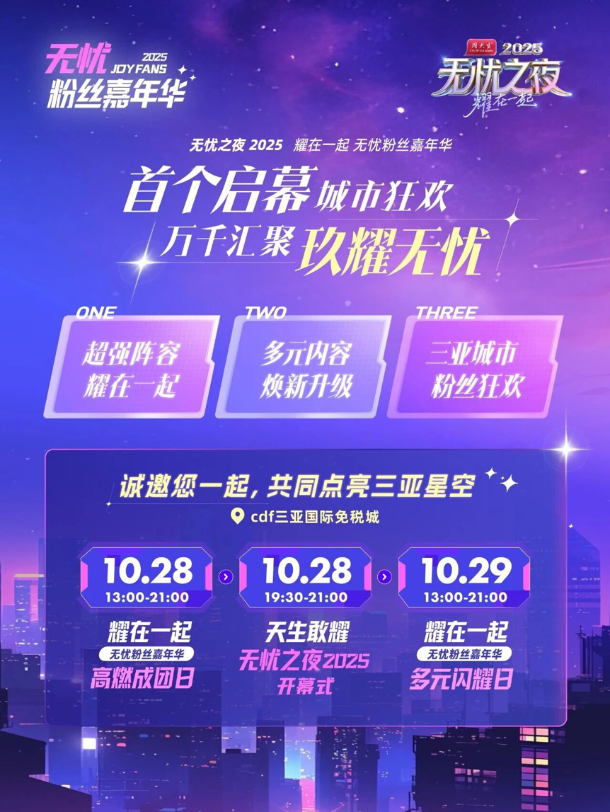 С 28 по 30 октября 2025 года в городе Саньи состоится ежегодный грандиозный фестиваль «Ночь без забот 2025», организованный WuYou Media и при эксклюзивном титульном спонсорстве Chow Tai Seng.