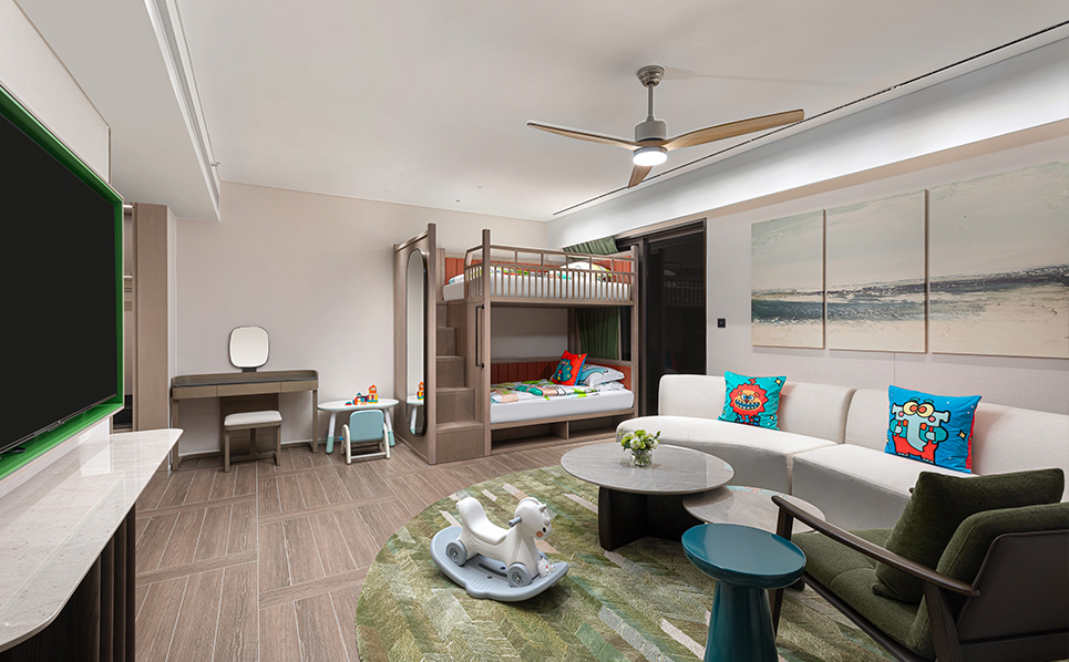 В отеле есть хорошо спроектированный открытый бассейн двойной высоты площадью 2100 кв.м, крытая и открытая детские игровые площадки, ресторан в саду на открытом воздухе, а также многофункциональный банкетный зал площадью 380 кв.м для удовлетворения потребностей различных гостей.Разнообразные ежедневные развлекательные мероприятия позволяют гостям не спеша насладиться отдыхом на побережье.