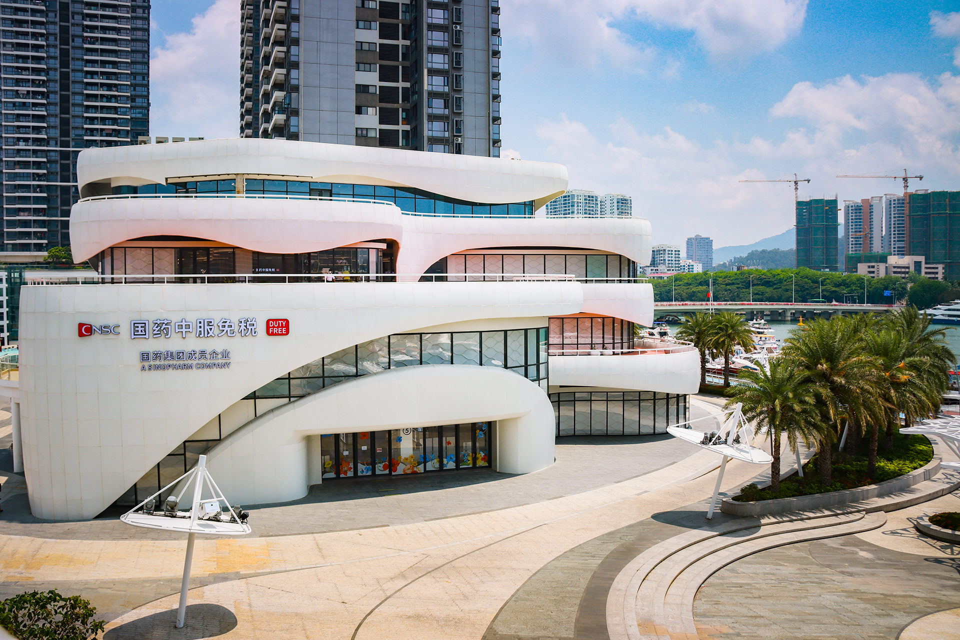 Д duty-free магазин Sinopharm CSC Санья расположен в центре города по аспектам бизнеса, туризма и спорта, рядом с яхтным причалом Haitian Grand Festival. Его стиль дизайна в целом прост и элегантен. Его волнообразный фасад органично вписывается в прилежащий морской причал. Это новый концептуальный торговый парк, который скрупулезно созданный Sinopharm Group.
