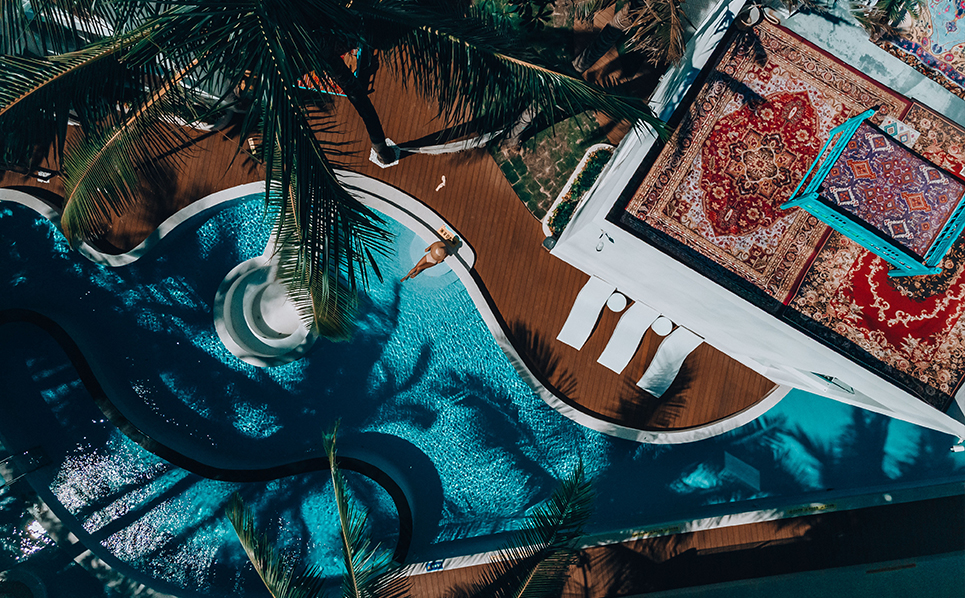 Целебный аромат лаванды, спокойная атмосфера в окружении кокосовых рощ и бассейнов, сине-белое марокканское архитектурное пространство - мы надеемся, что путешественники получат иной опыт, погрузившись в это место и наслаждаясь жизнью вдали от цивилизации, приехав в свободный мир.