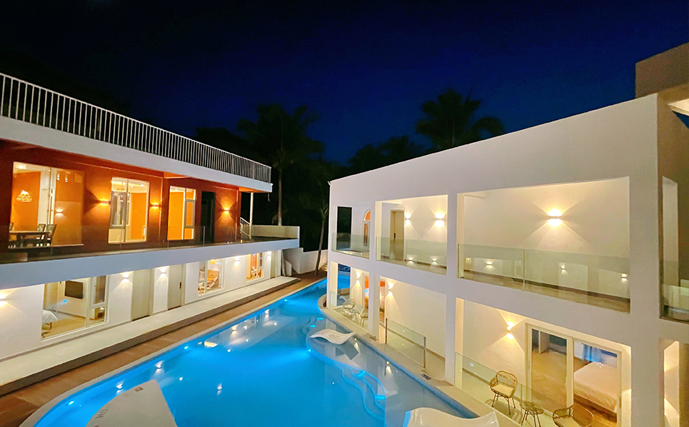 Основные типы номеров: вид на бассейн, балкон, две односпальные кровати, родительская и детская; количество номеров: 38; площадь бассейна: 500 кв. м; стиль оформления: марокканский стиль.