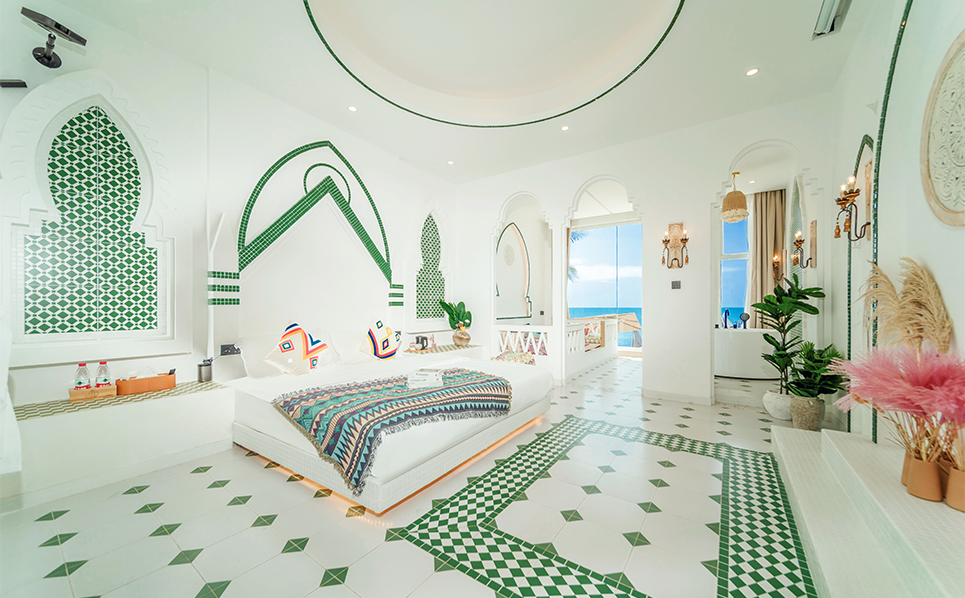 Гостиница с видом на море «7-е число, после полудня» - это отель типа «постель и завтрак», оформленный в марокканском стиле. Он известен своими насыщенными цветами и экзотической атмосферой. От внешнего вида отеля, общественных зон до каждой комнаты он излучает сильный марокканский колорит, заставляя гостей чувствовать себя так, словно они находятся в экзотической стране.