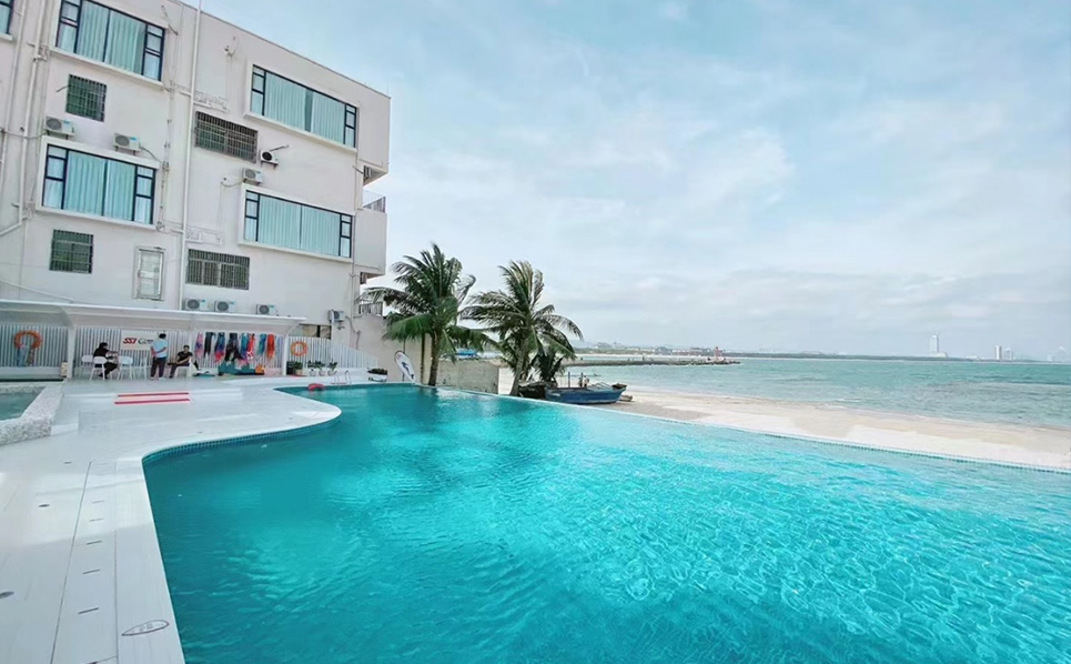 Выйдя из комнаты, вы можете подняться на террасу на крыше и увидеть закат над морем. Если вы хотите пощупать воду или поиграть в песок с детьми, за бассейном находится прекрасный государственный пляж - Хайтанвань.