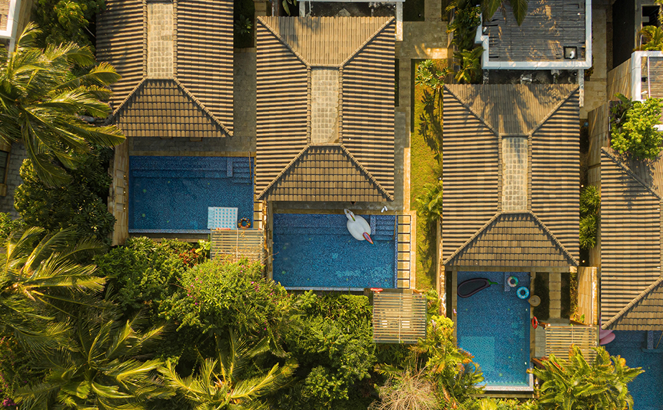 (3) Эксклюзивные удобства: Большинство вилл оборудованы частными бассейнами, солнечными лежаками и садовыми павильонами, а также имеют отдельные душевые кабинеты с тропическим дождем и просторные ванны. В некоторых виллах бассейны и гидромассажные ванны могут быть нагреты, что позволяет комфортно купаться на улице и в зимнее время.